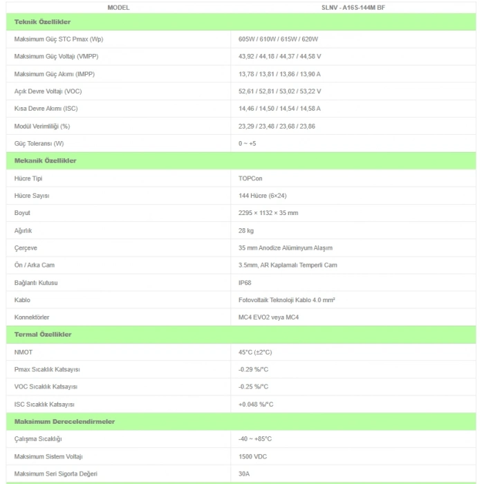 610W TOPCon Bifacial Half-Cut Güneş Paneli | Yüksek Verimli Solar Panel 10 ADET