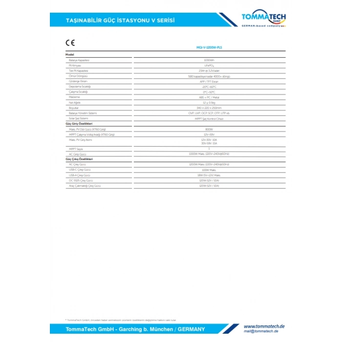 TommaTech 1030Wh Taşınabilir Güç Kaynağı; kamp, karavan, balıkçı teknesi, mobil ofis, acil durum yedek güç ve outdoor kullanım için tasarlanmış kompakt, sessiz ve yüksek kapasiteli bir enerji istasyonudur.